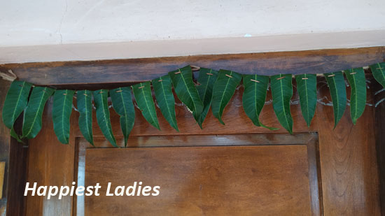 Door decoration is one of the traditional Indian way of welcoming our beloved guests, festivals and family gatherings. Although nowadays we have many colorful plastic and beaded door hangings, it was originally made from mango leaves. Mango leaves coated with turmeric/haldi with fresh flowers in between gives a grand look to your house.